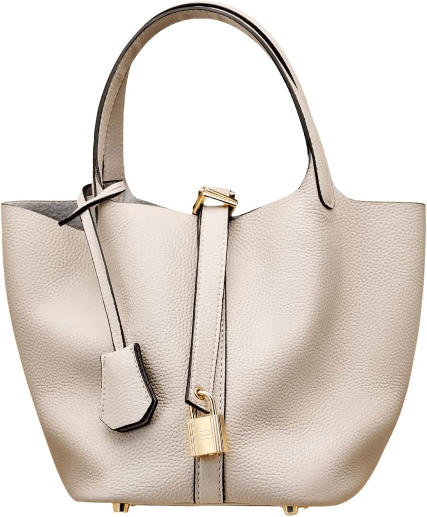 Genuine leather bucket bag for women old trend lychee drawstring soft basket tote bag